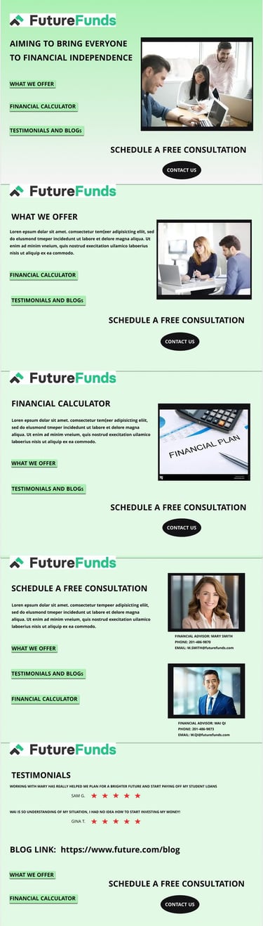 Using Figma to create a desktop landing page for a financial consulting firm in my UI/UX class.