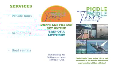 Using Adobe Indesign to create this trifold brochure for a boat tour company called Piddle Paddle Tours