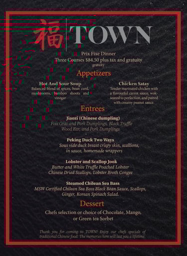 Using Adobe Indesign to create a menu for a high-end Chinese Restaurant called Town.